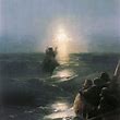 The disciples got into the boat and went over the sea towards Capernaum. It was dark and a great wind was blowing.