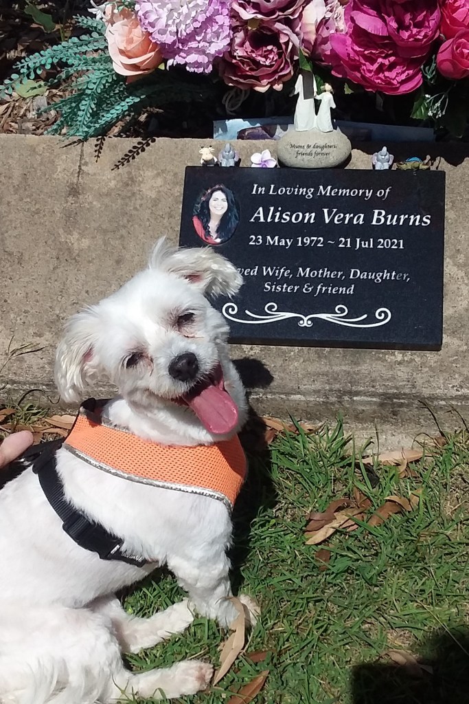 A little white dog brings God’s Peace and Joy into the moment. I believe Alison with HIM Above also smiled.