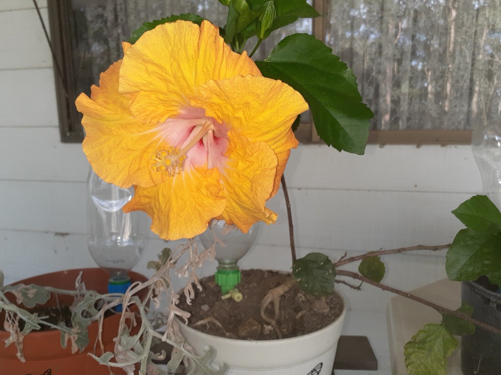 Two days ago I photographed this again unexpectedly flowering pot plant,. It too is beautiful but a paler more resilient and less dramatic representation of beauty and life.